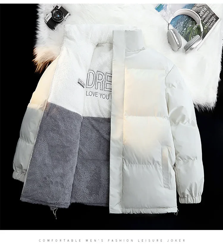 Double-Sided Wear Lamb Velvet down Jacket Men's Loose Stand Collar Warm Couple Style Winter New Arrival Korean Version
